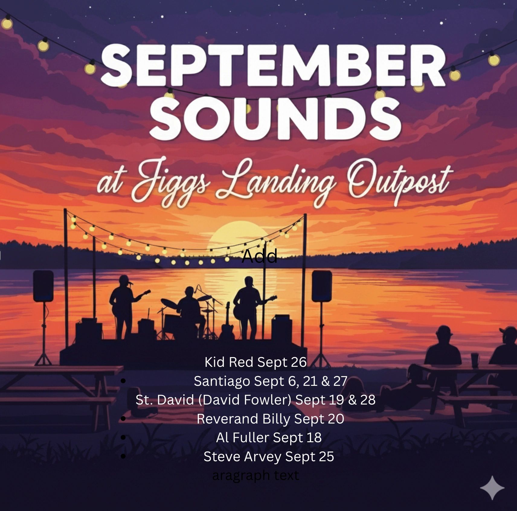 September Sounds at Jiggs Landing Outpost 6106 63rd Street East, Bradenton